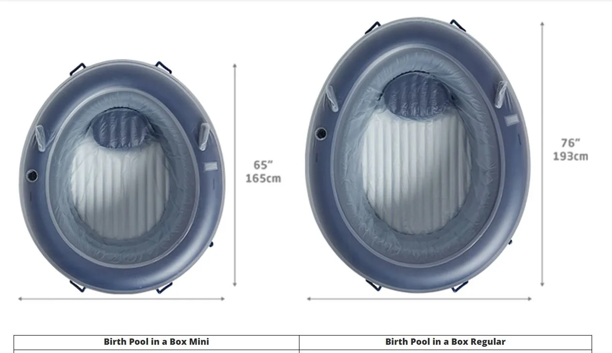 Please note the Mini size is still quite spacious (65” x 57” - 165cm x 145cm) and suitable for you if you are smaller than 6ft and do not want a birth partner in the pool with you.